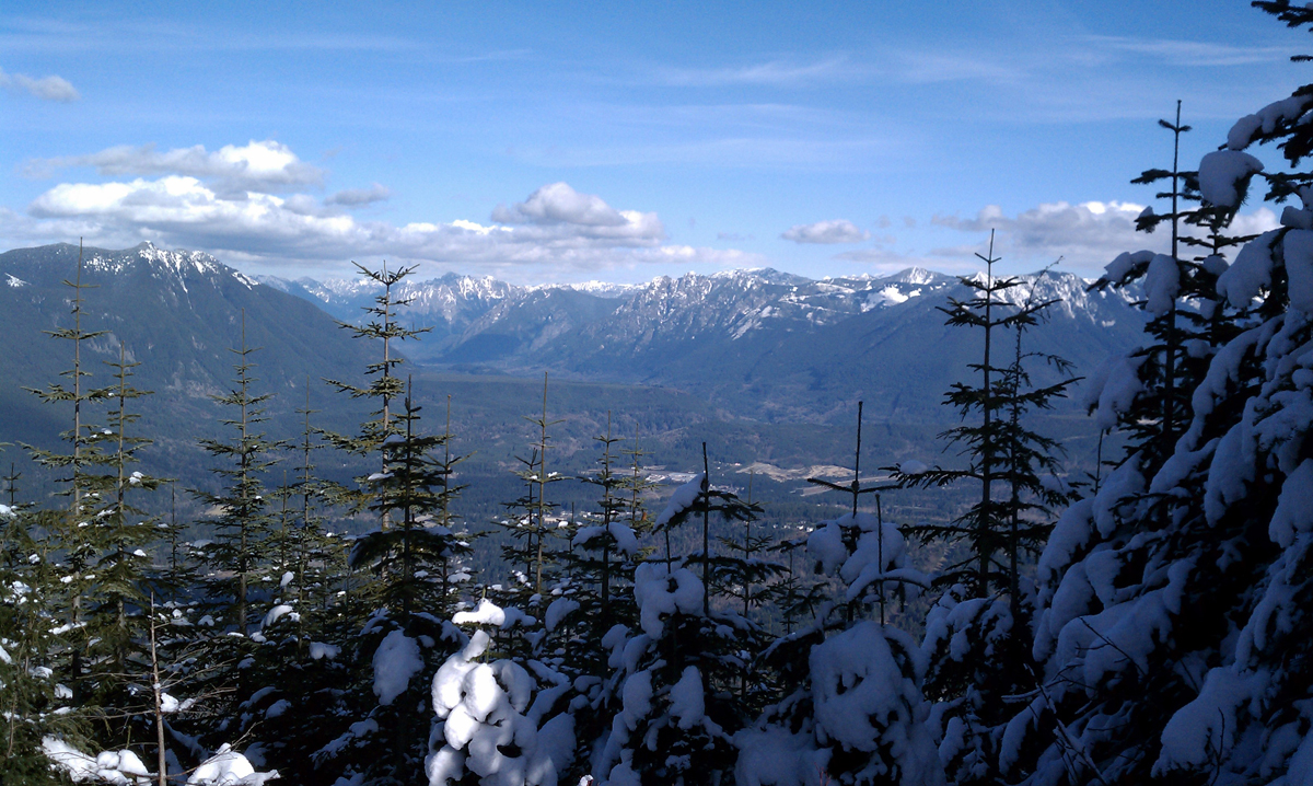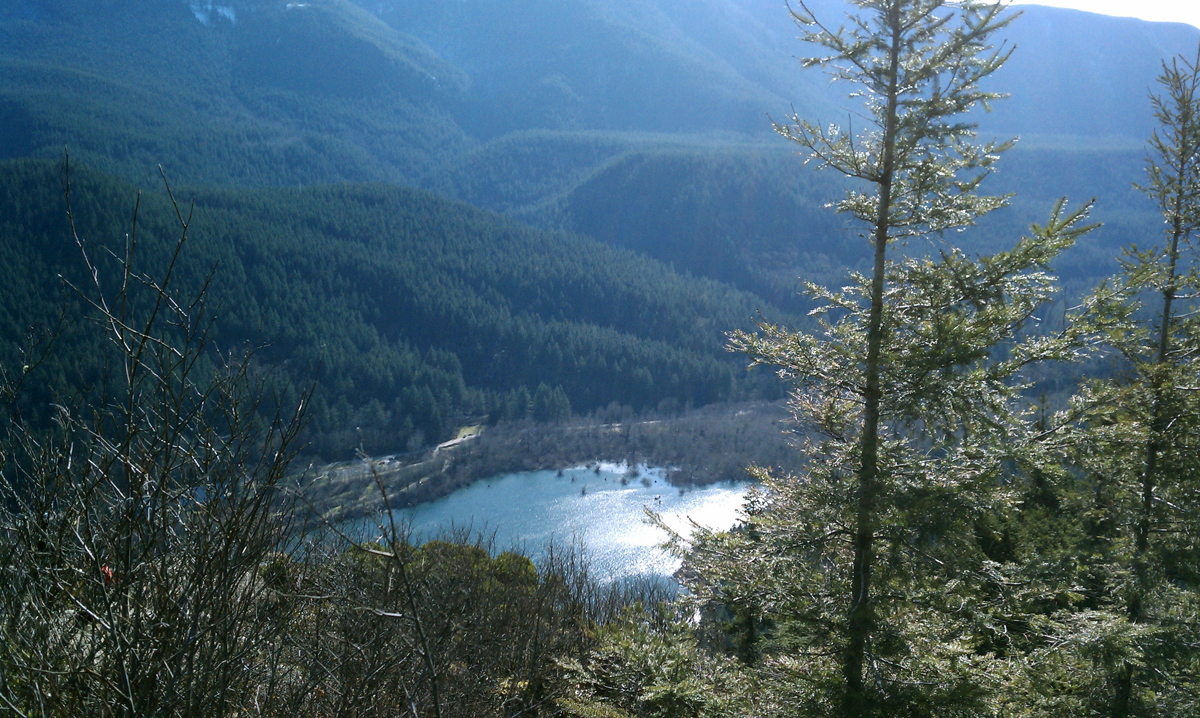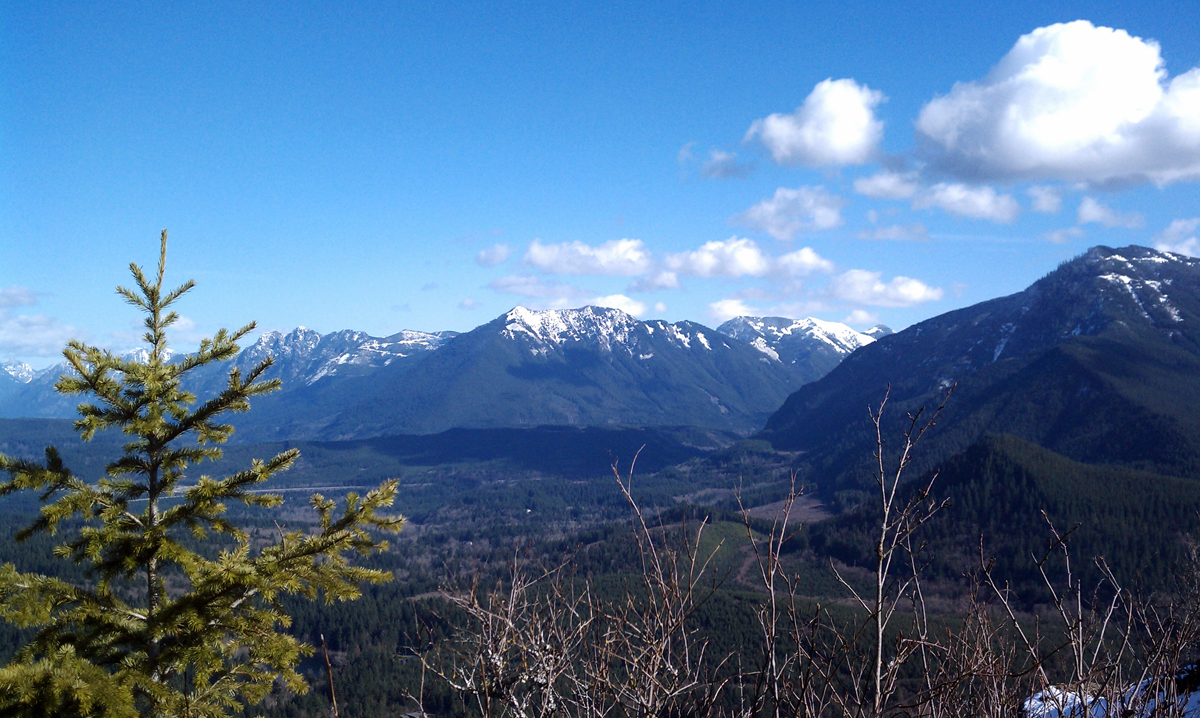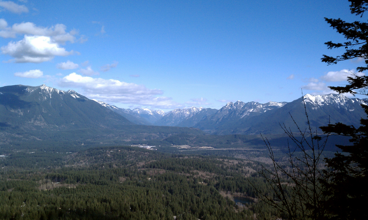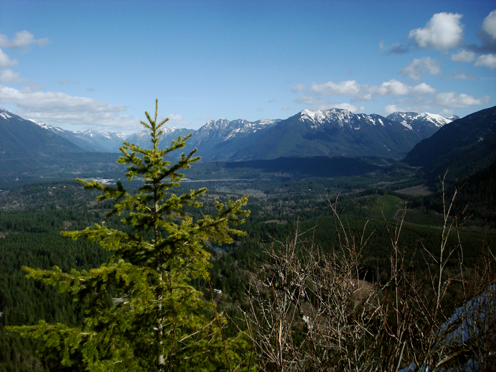 One mile into the hike is the first opening through the trees for a southerly view. It overlooks the protected Cedar River watershed and a view of Mount Lindsay. Another mile up from there is the real viewpoint...Rattlesnake Ledge.