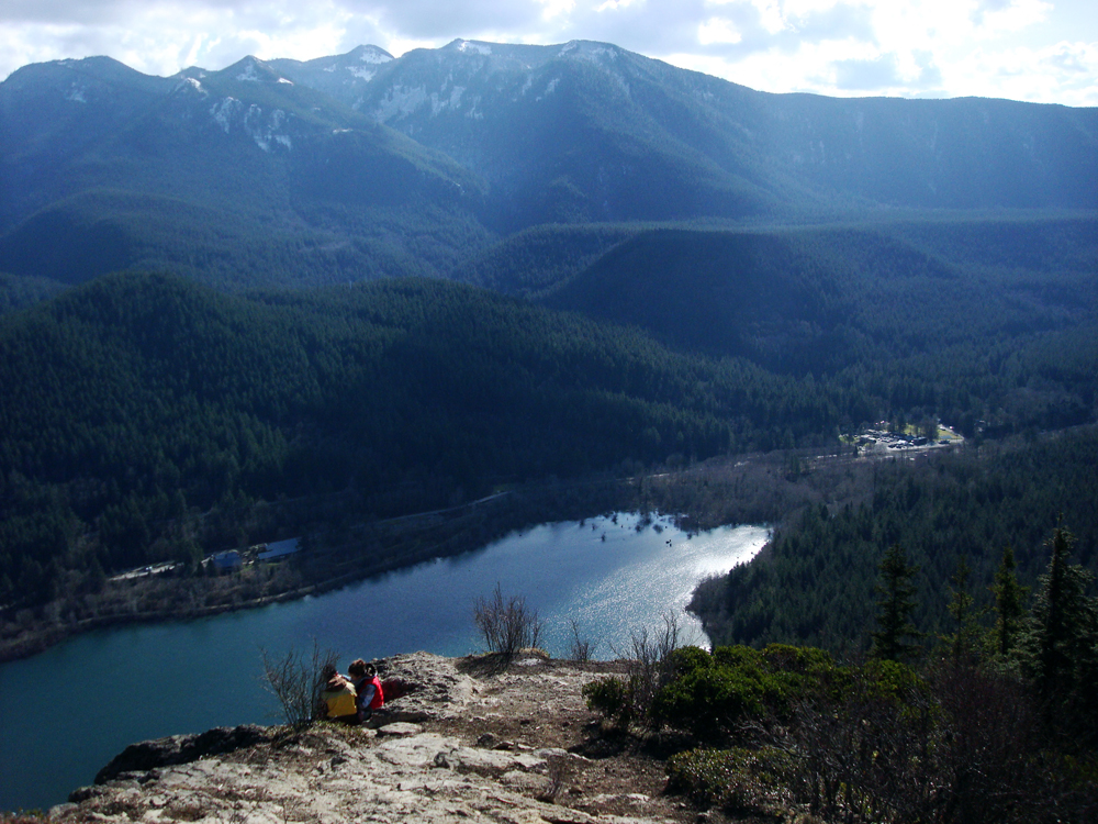 Rattlesnake Ledge is what the name implies - a rocky ledge, precariously overhanging the side of Rattlesnake Mountain. The ledge can get crowded and hikers with dogs or children should have them in control at all times...one wrong step and it's 1100 feet down. The view from here is spectacular as it overlooks Rattlesnake Lake, Cedar River watershed, Mount Washington, Mount Si, Chester Morse Lake and all up and down the Snoqualmie River Valley. An incredible 270-degree north-facing view.