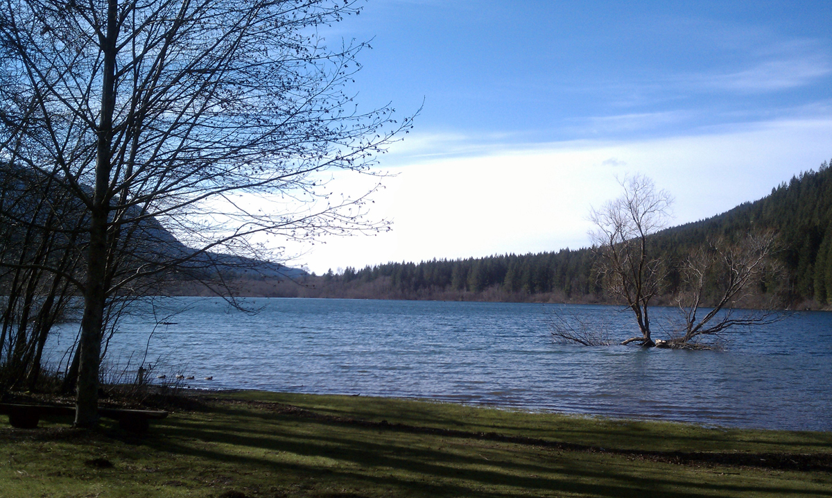 Take I-90 to exit 32 and head south on 436th Ave. SE and it becomes Cedar Falls Road. Less than three miles is the Rattlesnake Lake parking area. Not everyone parked here is heading up to the Ledge. Some are just enjoying the lake itself or fishing for the rainbow trout. The NW Forest Pass is required in your window. Once parked, follow the signs for Rattlesnake Ledge. Within a few short minutes you'll come to some porta-johns and a grassy knoll before the climb begins.